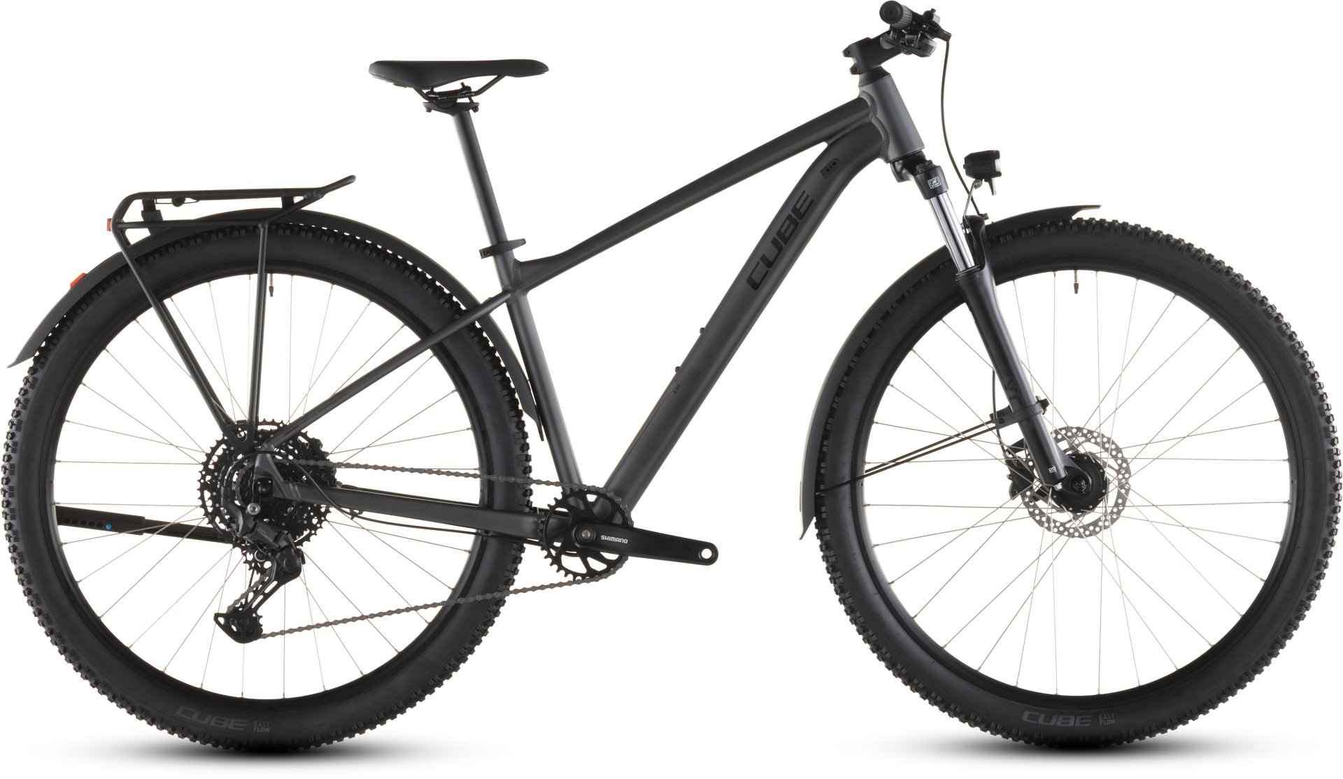 Ein Mountainbike kommt überall hin – so der Leitsatz bei der Entwicklung des Cube Aim Pro FE, das mit allen nur erdenklichen Anpassungsoptionen versehen ist. Schutzbleche, Beleuchtung, Gepäckträger und Seitenständer bieten auf dem täglichen Weg ins Büro ebenso top Support wie bei Erledigungen und Einkäufen in der City. Dank 100 mm Federgabel, hydraulischen Shimano Scheibenbremsen und Shimano Cues 10-Gang Schaltung zeigt sich das Bike aber auch im Offroad-Einsatz am Wochenende souverän und zuverlässig.Dazu kommen griffige, komfortable 2.25 Zoll Reifen. Kurz: ein Allrounder, wie er im Buche steht!