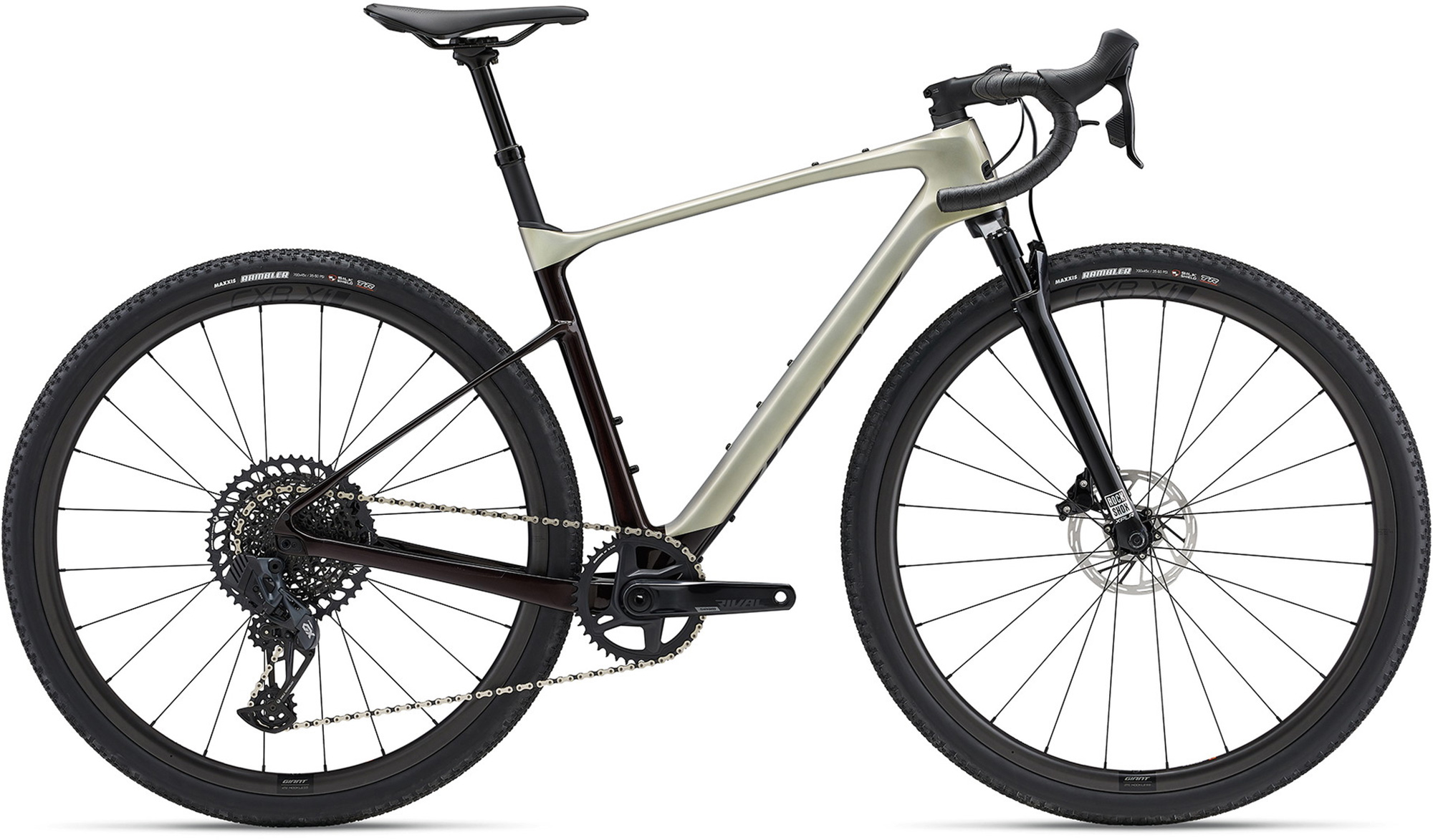 Abfahrten mit grobem Geröll, Schotter und Felsen sind kein Problem für diese leistungsstarke Carbon-Gravel-Maschine. Der Advanced-Carbon-Rahmen mit Flip-Chip-Ausfallende, die RockShox Rudy Ultimate XPLR Federgabel mit 40 mm Federweg und die gefederte Dropper-Sattelstütze sorgen für Kontrolle und Komfort auf jedem Untergrund. Die elektronische SRAM Rival eTap Rival / GX Eagle AXS 1×12-fach Schaltung, der GIANT CXR X1 Disc Carbon-Laufradsatz und die hydraulischen SRAM Rival eTap AXS HRD Scheibenbremsen stehen für präzise Performance und maximale Sicherheit.