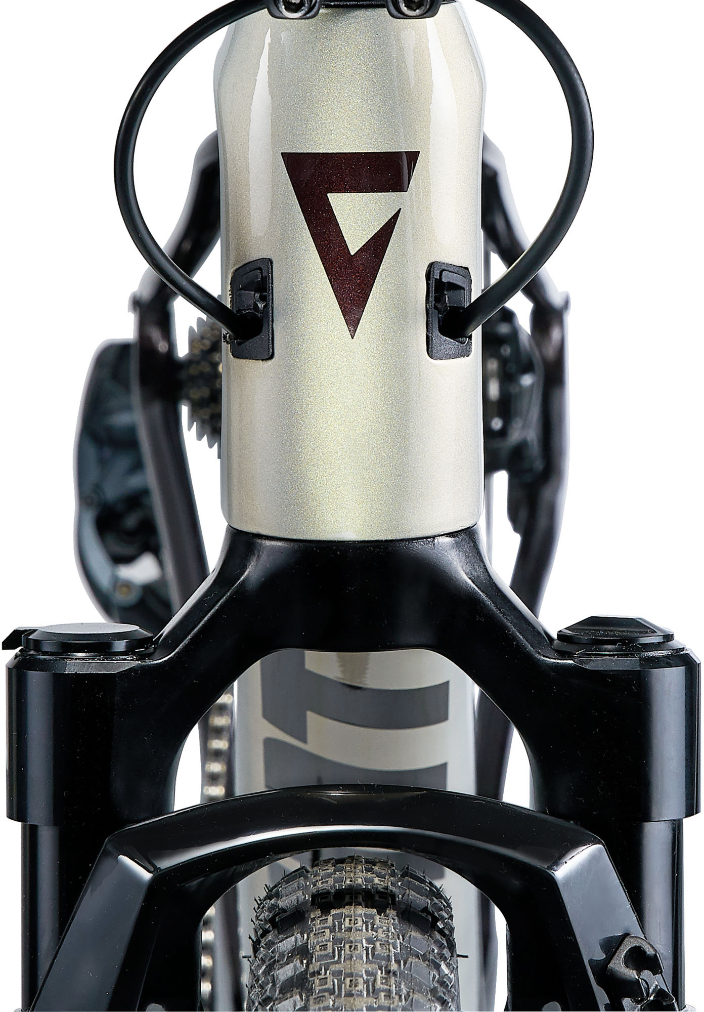 Mit einem Flip-Chip am hinteren Ausfallende kannst du den Radstand kurz für schnelleres Handling oder lang für mehr Stabilität bei hoher Geschwindigkeit einstellen. Die lange Einstellung ermöglicht auch größere Reifendurchmesser bis zu 53 mm. Für zusätzliche Stabilität kannst du die mitgelieferte Dropper-Sattelstütze mit Federung wählen.